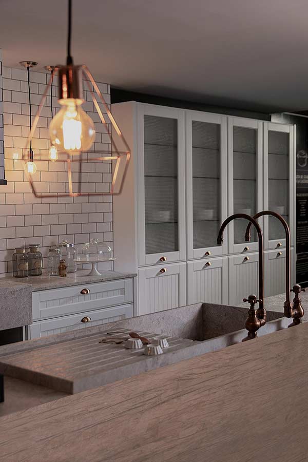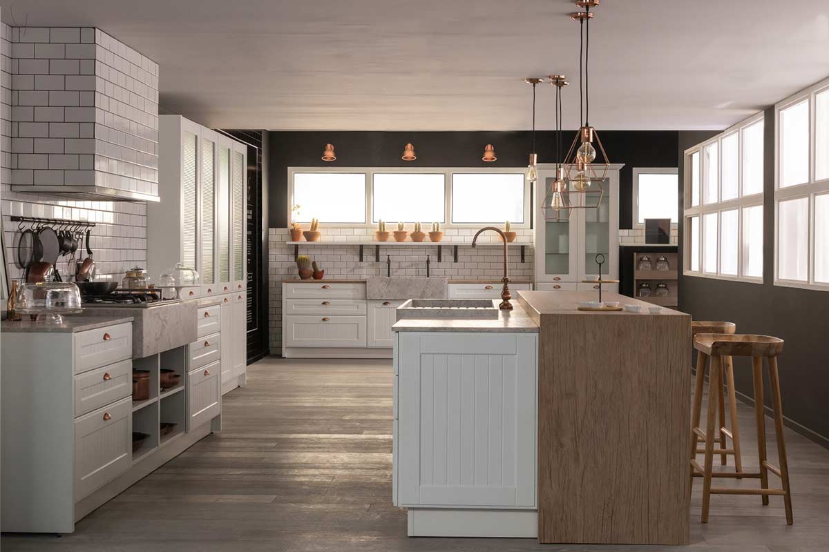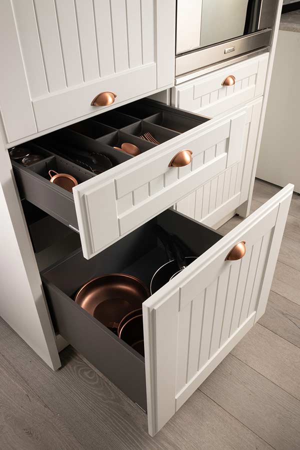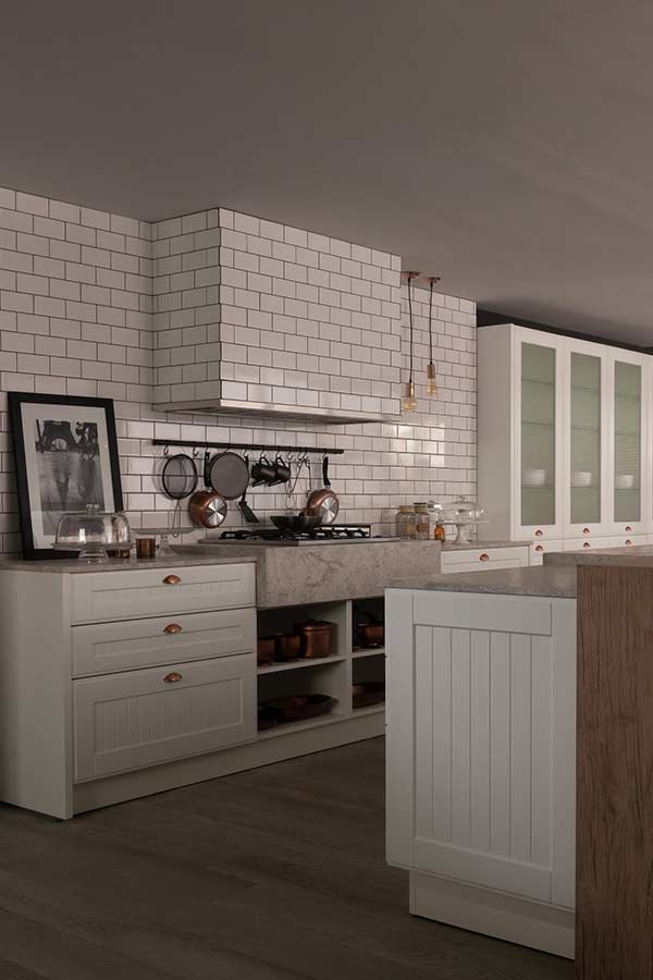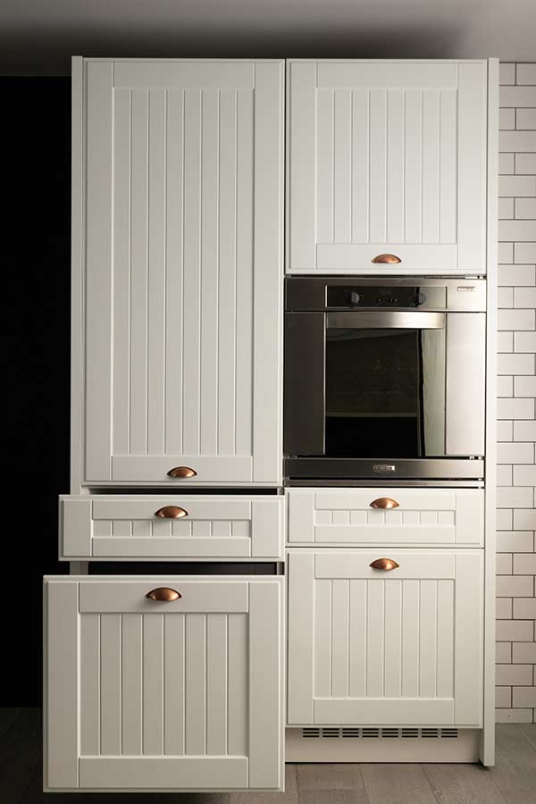 En el modelo Boston, las puertas enmarcadas con sutiles ranuras nos recuerdan las cocinas de antaño.