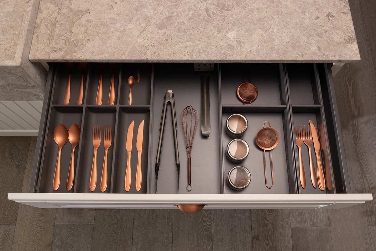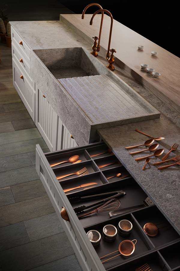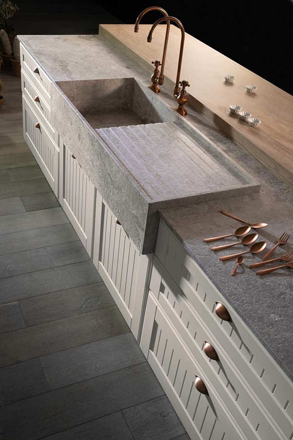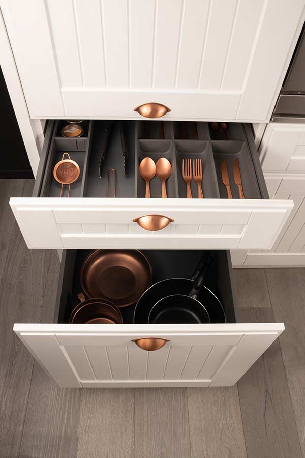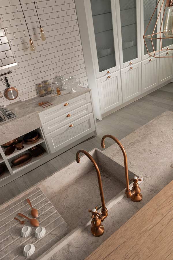 En el modelo Boston, las puertas enmarcadas con sutiles ranuras nos recuerdan las cocinas de antaño.