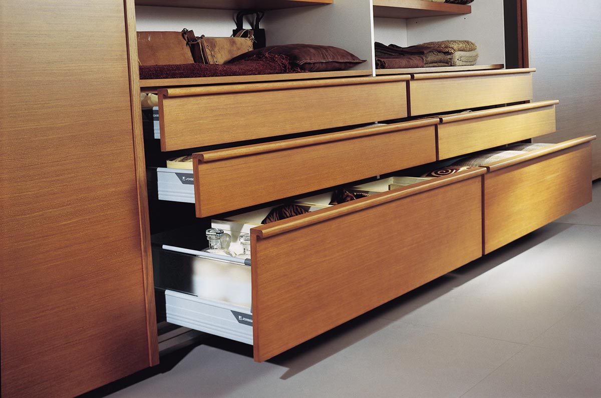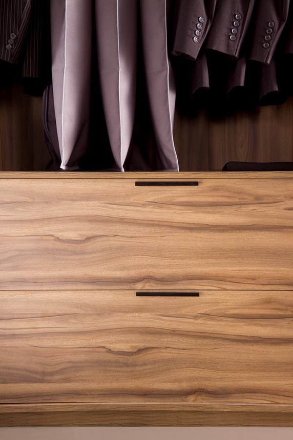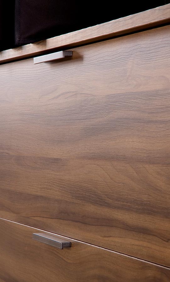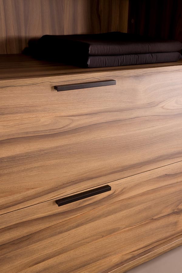 Puertas enchapadas en madera de roble americano con dos opciones de lustre: teka y wengué.