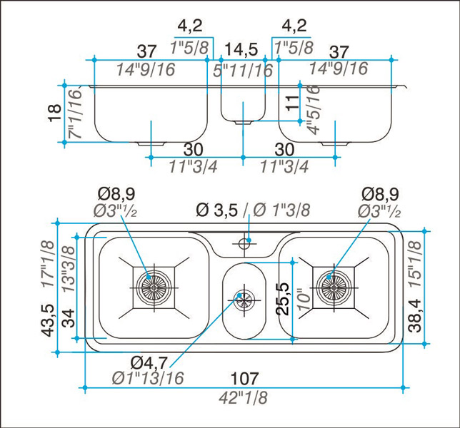 Provista con un práctico piletín de ABS blanco extraible, el cual ha sido pensado para disponer de un espacio adicional de escurrimiento.